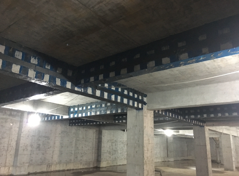 西南财经大学天府学院罗江校区位于德阳市罗江县。该项目图书馆由于结构原因造成局部区域梁承载力不足,应业主要求对部分梁进行粘贴钢板、粘贴碳纤维布等方式进行结构补强。
